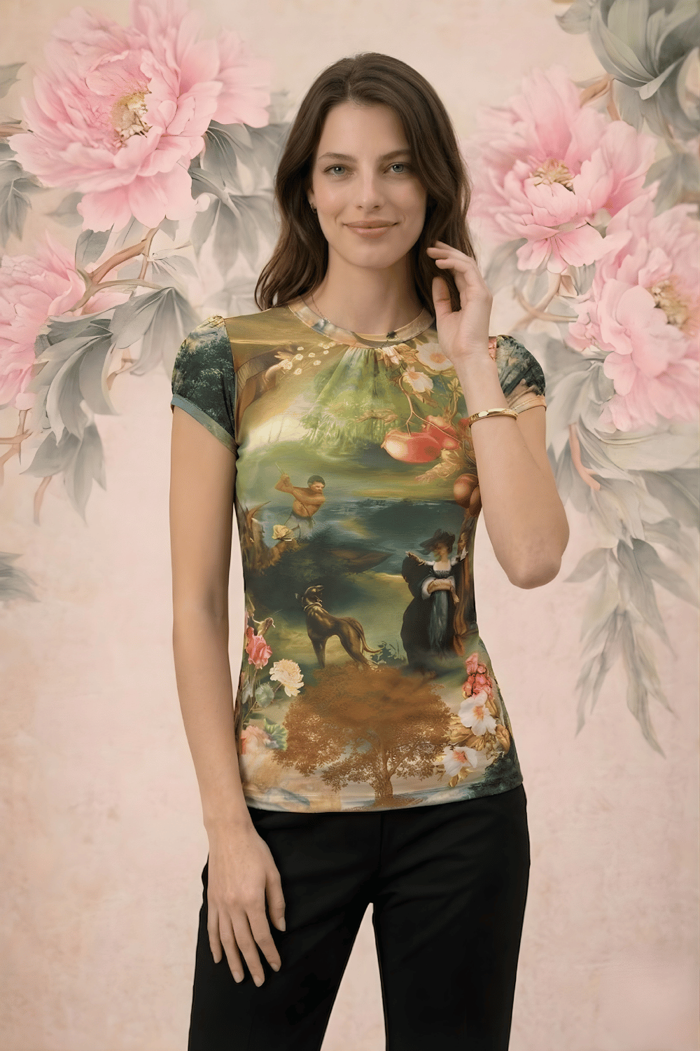 חולצה סופרן מהממת בגזרה יפה ומעוצבת עם ציור עוצר נשימה. מושלמת.