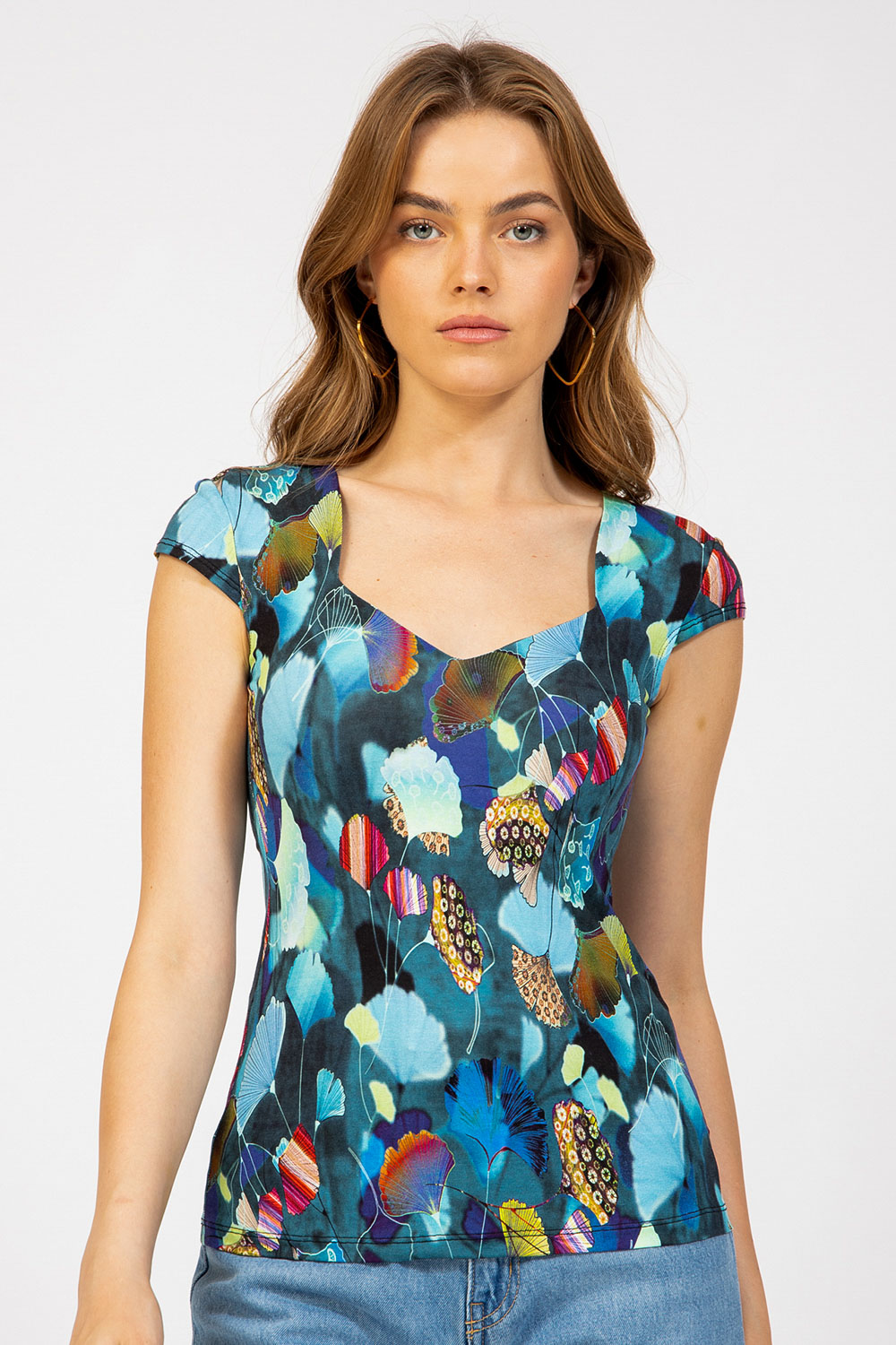 פרחים טורקיזחולצה רנסאנס פרחים טורקיז.