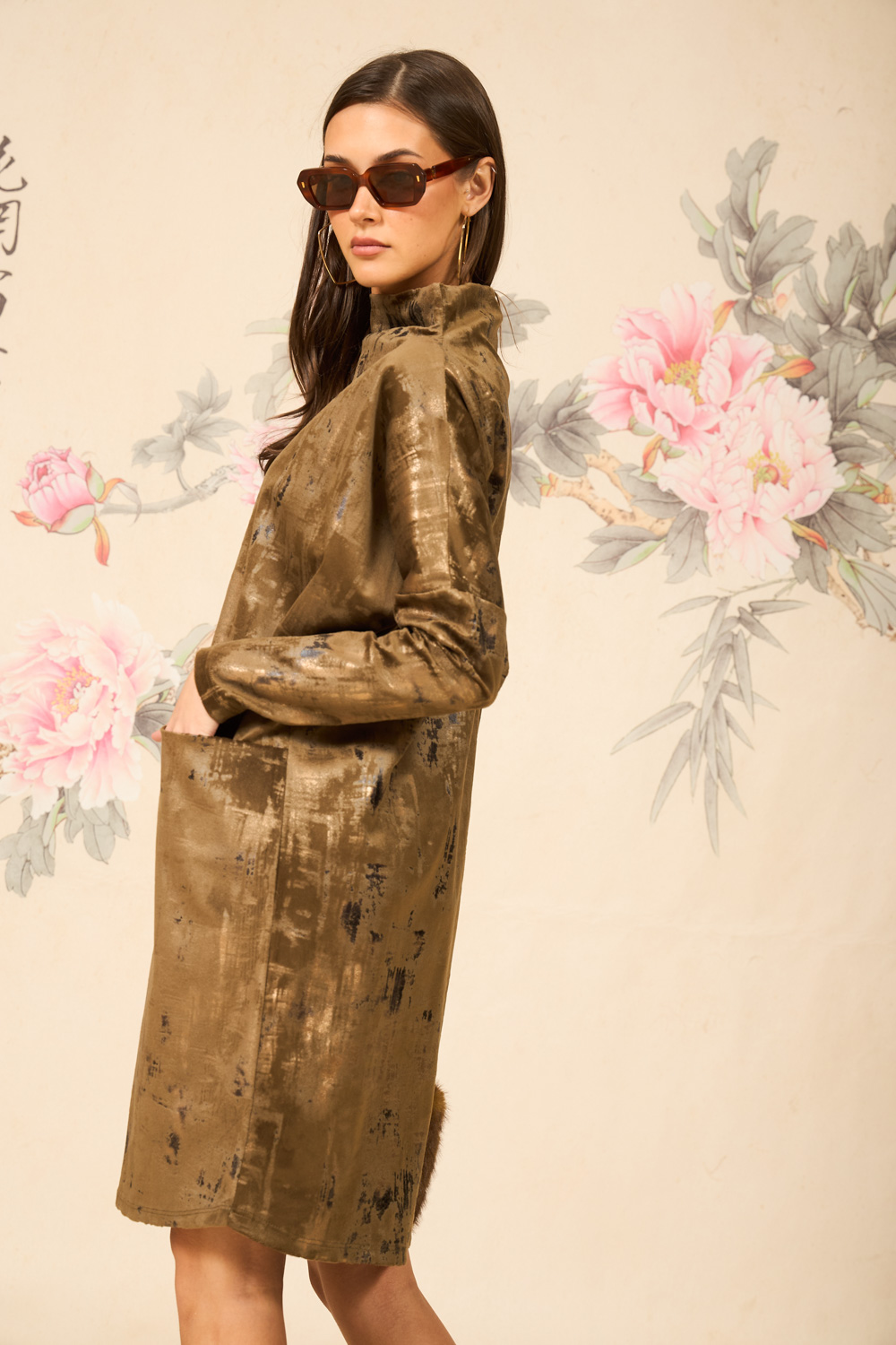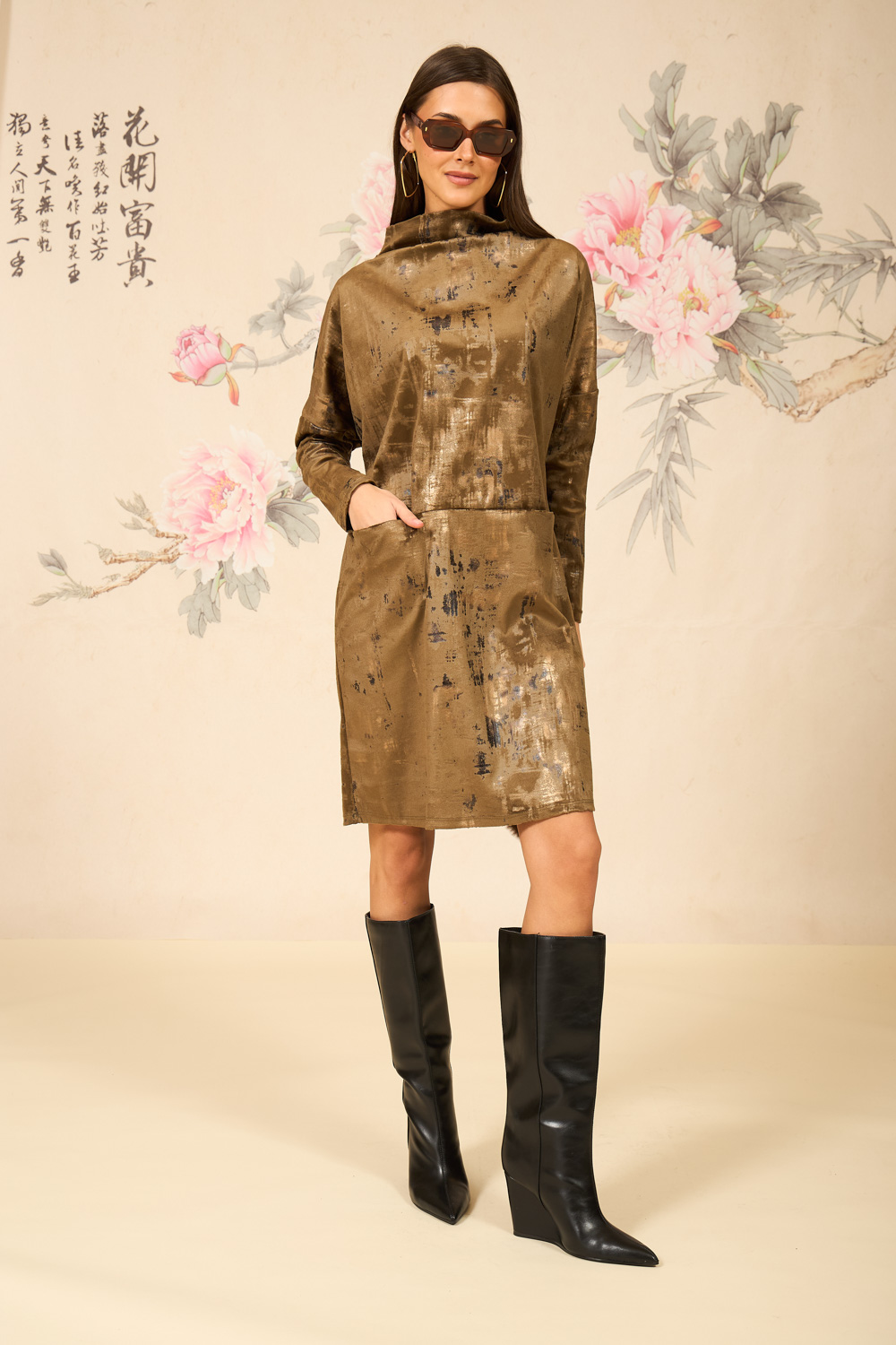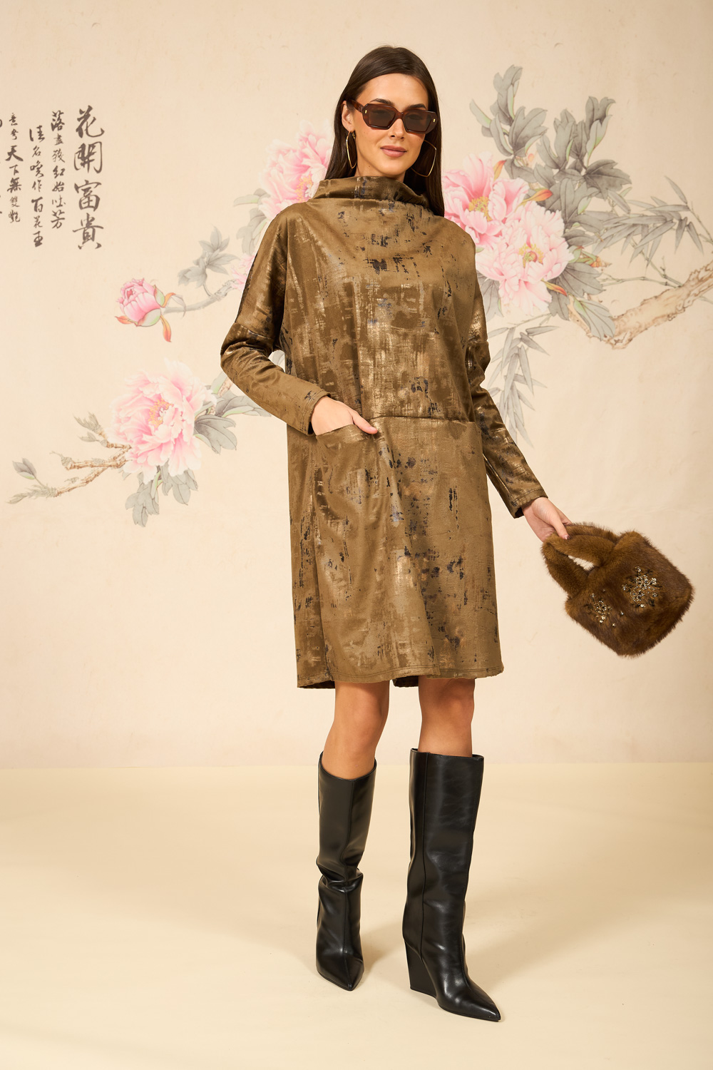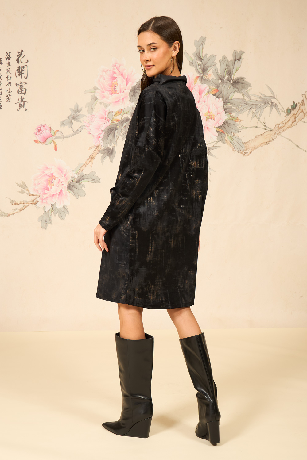 סינקופה ארוכה שחורה זהובה - שמלה אלגנטית בגזרה מחמיאה ומעודנת, מושלמת לאירועים ומעניקה מראה נשי ומרשים.